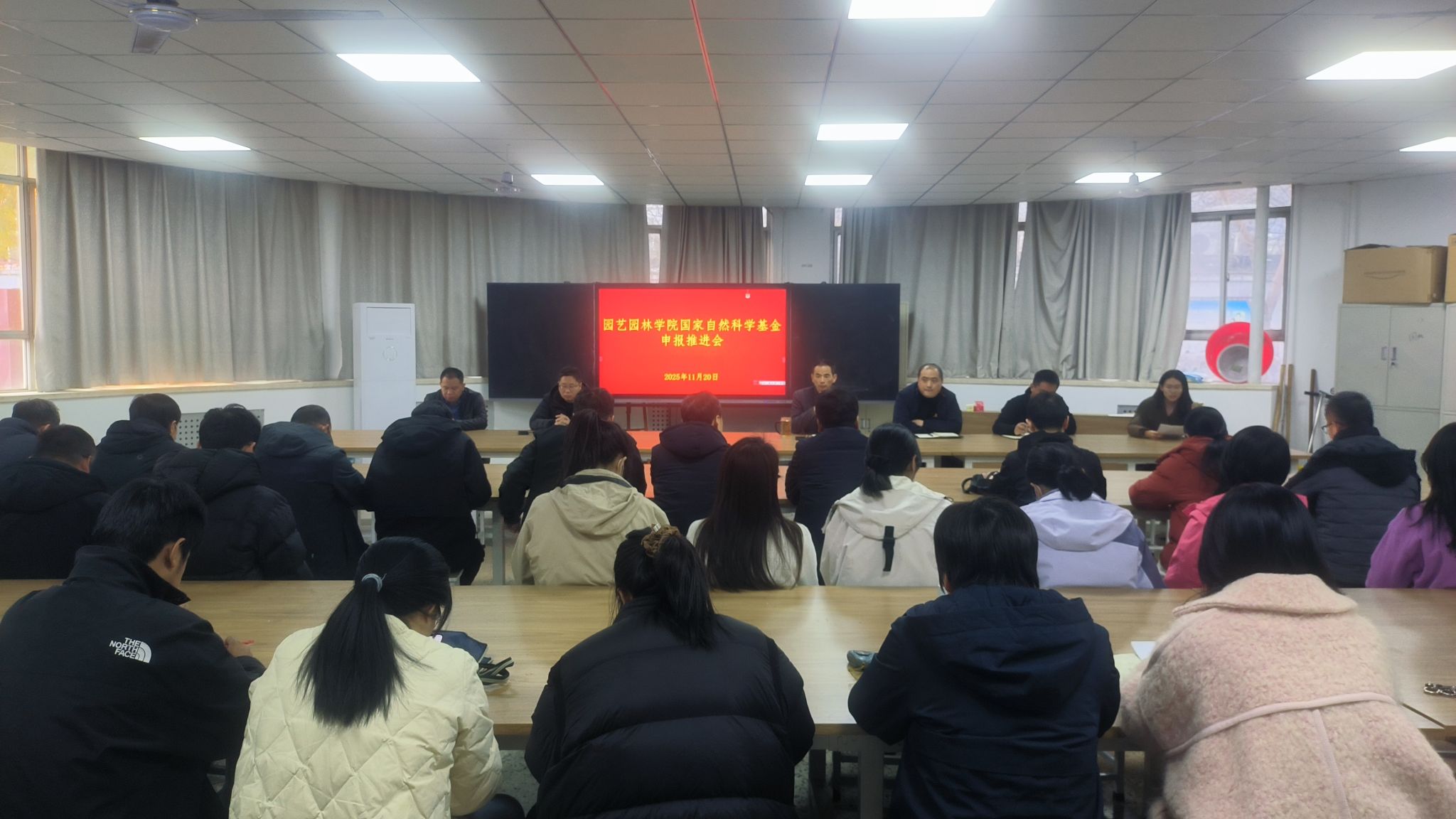 11月20日下午,园艺园林学院在实验楼A101画室召开2026年度国家自然科学基金申报工作推进会。学院领导班子成员与所有基金申报教师参加会议。会议由学院学术副院长袁敬平主持。