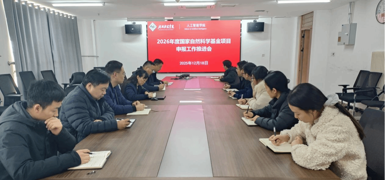 12月18日下午,人工智能学院在弘德楼A205召开2026年度国家自然科学基金项目申报工作推进会,学院全体班子成员及申报教师参会,会议由学院院长蔡磊主持。