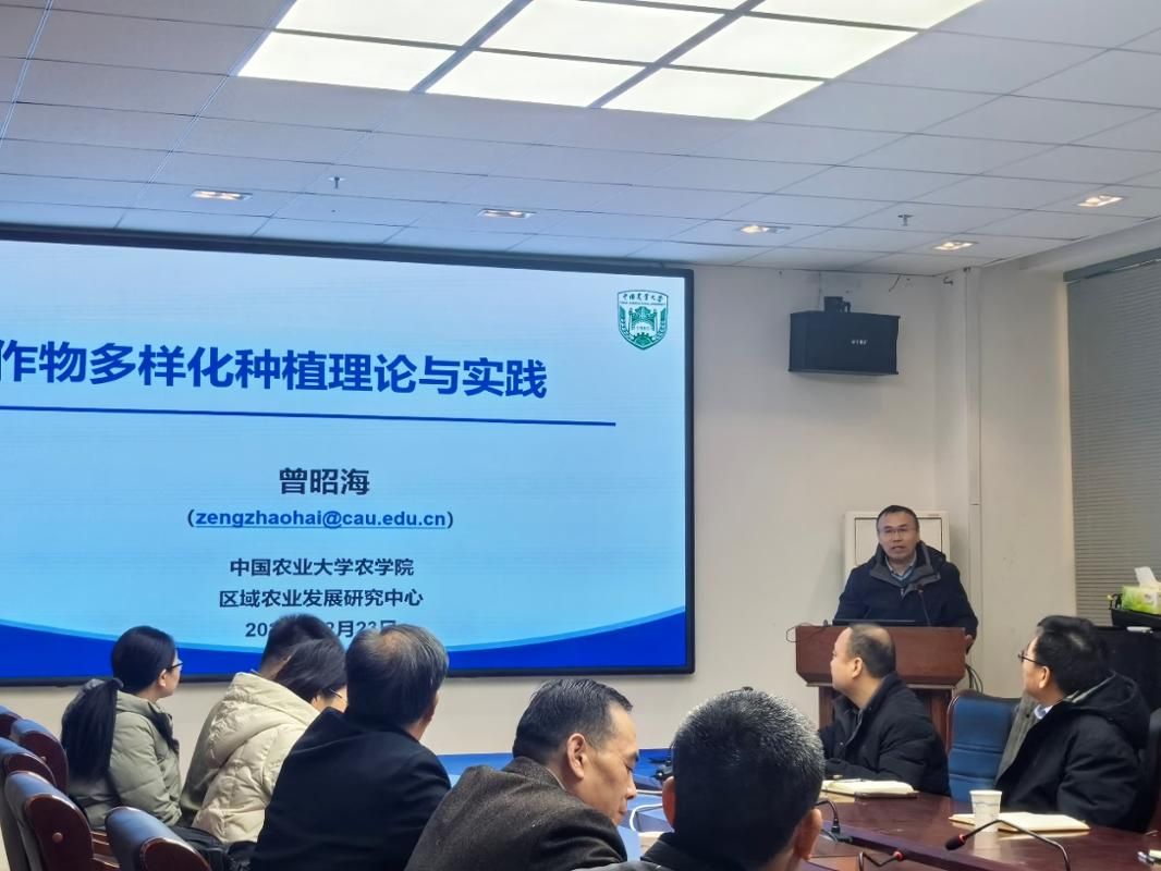 12月23日,中国农业大学曾昭海教授应邀在农学院708会议室做题为《作物多样化种植理论与实践》的学术报告,学院60余名师生参加了报告会,报告会由农学院副院长朱启迪主持。