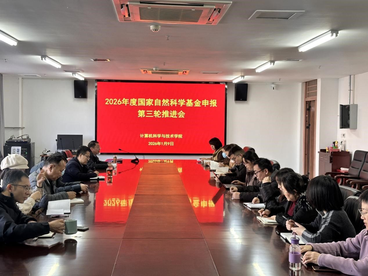 2026年1月9日下午,计算机科学与技术学院召开2026年度基金申报工作第三轮推进会,会议由高国红院长主持,全体基金申报教师参加了本次推进会。