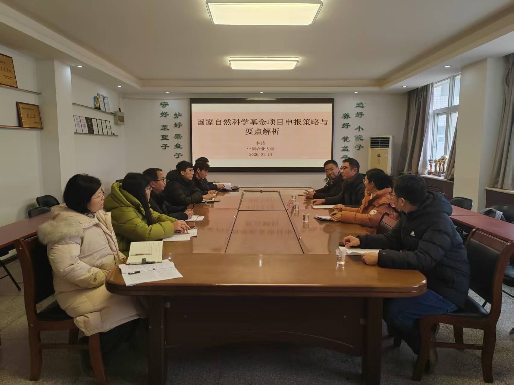 1月14日,我院特邀国家自然科学基金青年项目(B类)获得者、中国农业大学林涛教授,在实验楼B316会议室开展国家自然科学基金项目申报专题辅导。学院领导班子成员及申报教师参会,会议由学术副院长袁敬平主持。