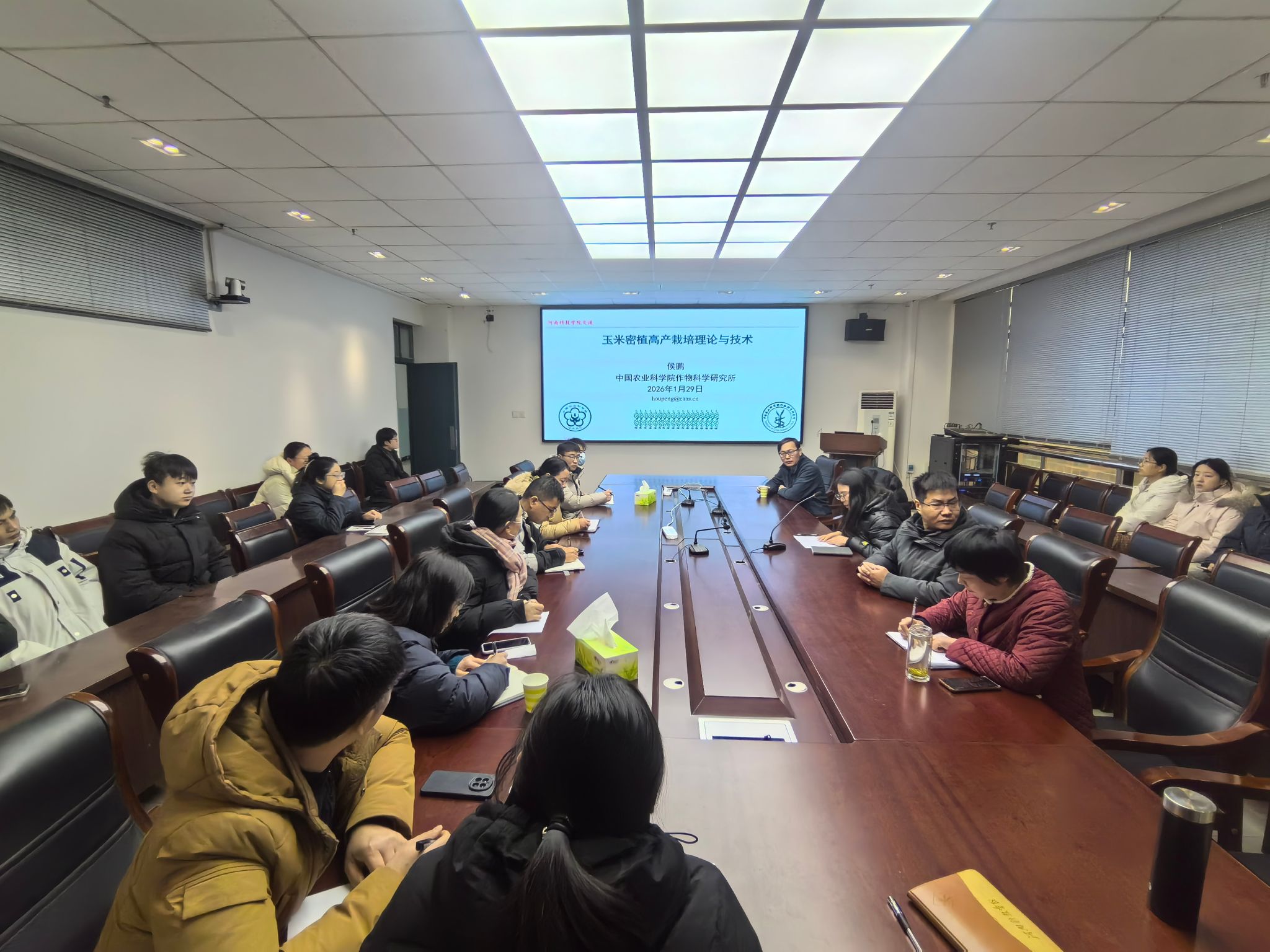 2026年1月29日,中国农科院作物所侯鹏研究员应邀在知行楼708会议室做《玉米密植高产栽培理论与技术》的专题学术报告。报告会由农学院学术副院长郑会芳主持,学院50余名师生参加。