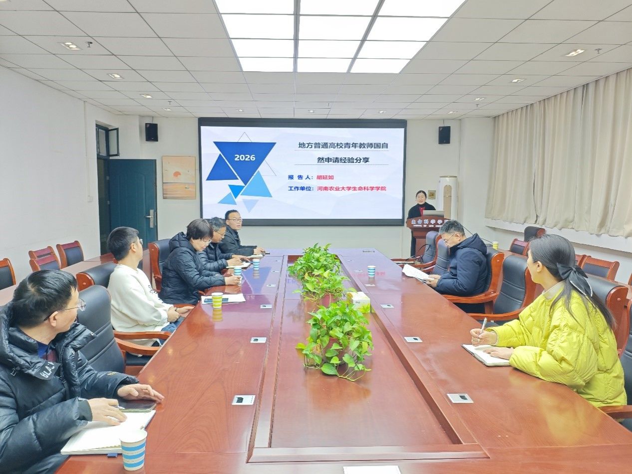 2月13日上午,生命科学学院特邀河南农业大学胡延如教授来院开展国家自然科学基金申报专题指导。会议由院长张守涛主持,学术副院长张蕾和部分申报教师参会。