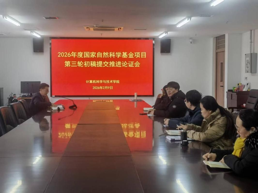 2026年2月9日,计算机科学与技术学院组织召开国家自然科学基金项目第三轮初稿提交暨推进论证会。会议由副院长王建平主持。