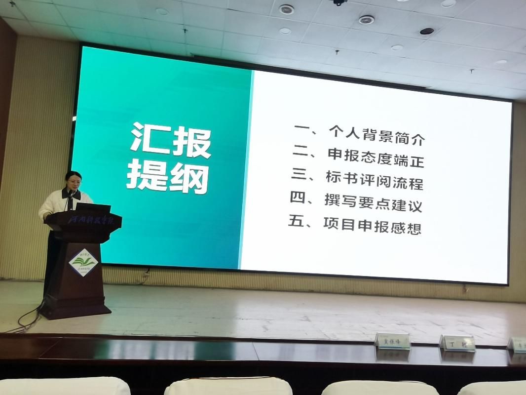 11月7日下午,我校在图书馆一楼学术报告厅召开国家自然科学基金项目写作辅导报告会。会议邀请来自河南科技大学的冀保峰教授、河南农业大学的李文婷教授作专题自科基金写作辅导报告。副校长丁轲出席会议,科技处负责人、各学院院长、科研副院长、科研秘书及拟申报国家基金项目的教师代表参加会议。会议由科技处副处长余昊主持。