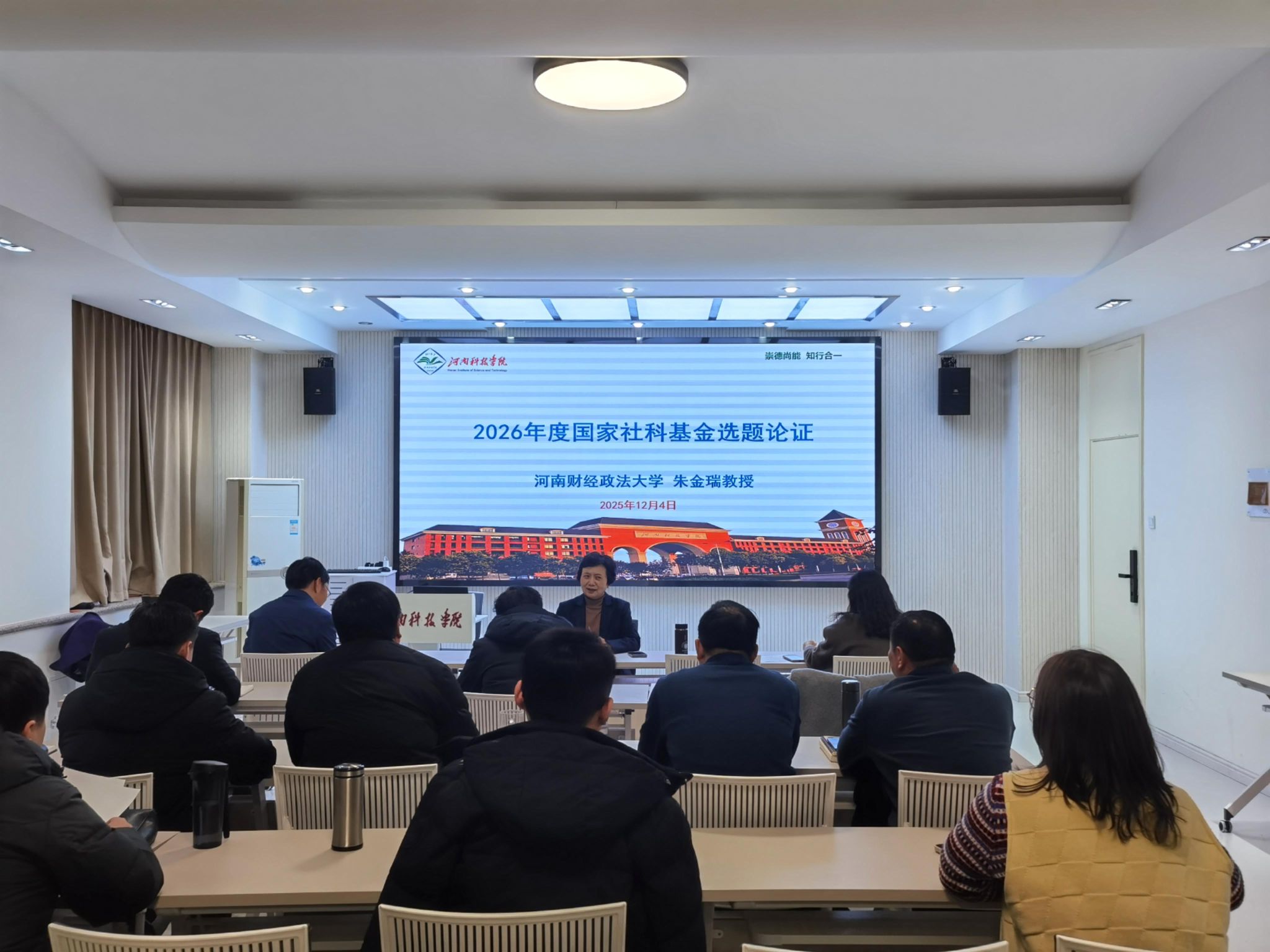 为推进国家社科基金项目申报工作,12月4日,马克思主义学院在0号楼809会议室举办2026年国家社科基金项目选题论证会。本次会议特别邀请河南财经政法大学朱金瑞教授担任点评专家。学院领导班子成员及各项目负责人参加会议。会议由副院长张希中主持。