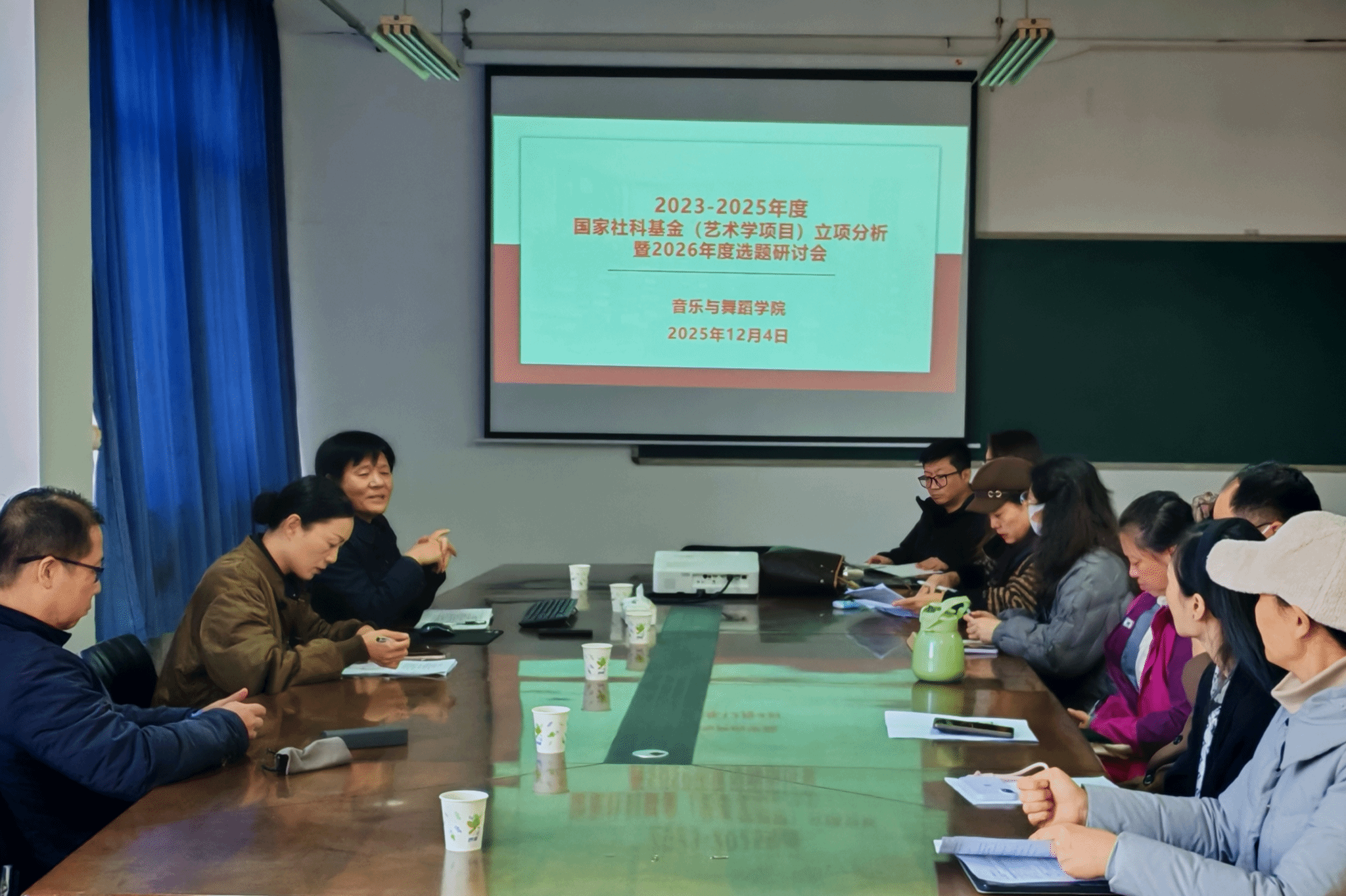2025年12月4日下午3点,音乐与舞蹈学院在8#508会议室召开2023—2025年度国家社科基金(艺术学项目)立项分析暨2026年度选题研讨会。院长姬英涛、副院长张思镜、雷永强教授以及学院副高以上职称人员和博士教师参加会议。会议由副院长张思镜主持。