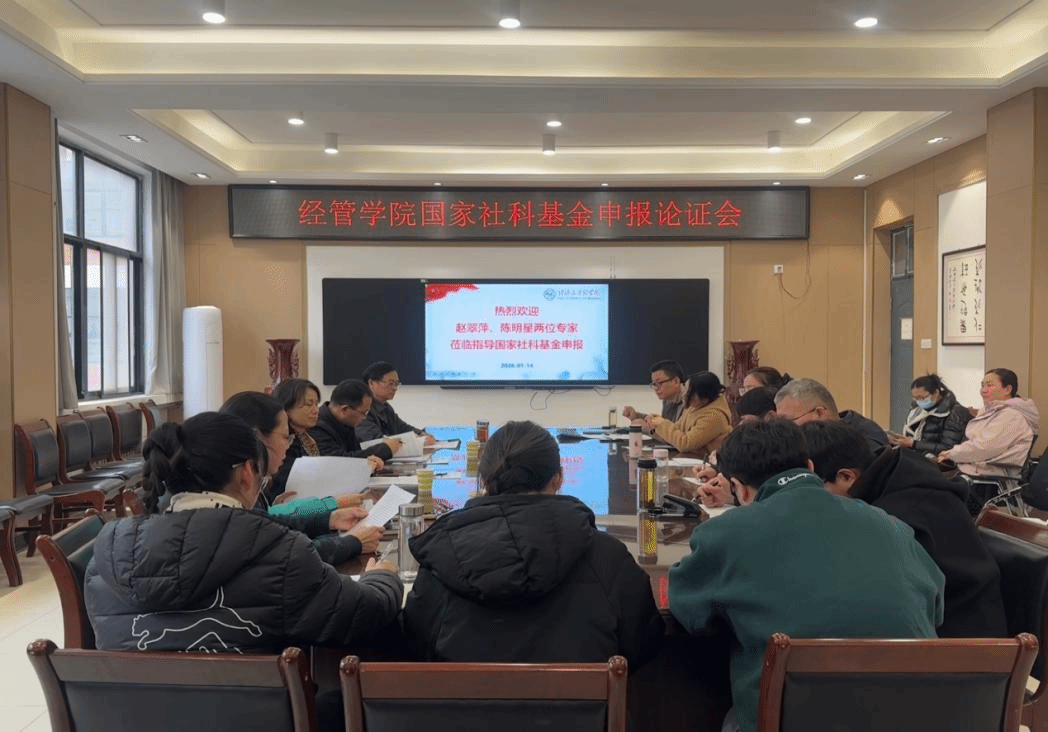 2026年1月14日下午,我院于10号楼202室组织召开国家社会科学基金项目申报专题论证会。会议特别邀请河南农业大学社会服务处处长、博士生导师赵翠萍教授与河南省社会科学院农村发展研究所所长、研究员陈明星教授莅临指导。科技处副处长文平、院党委书记何二毛、执行院长崔鸽及17名申报骨干教师共同参会。会议由崔鸽主持。