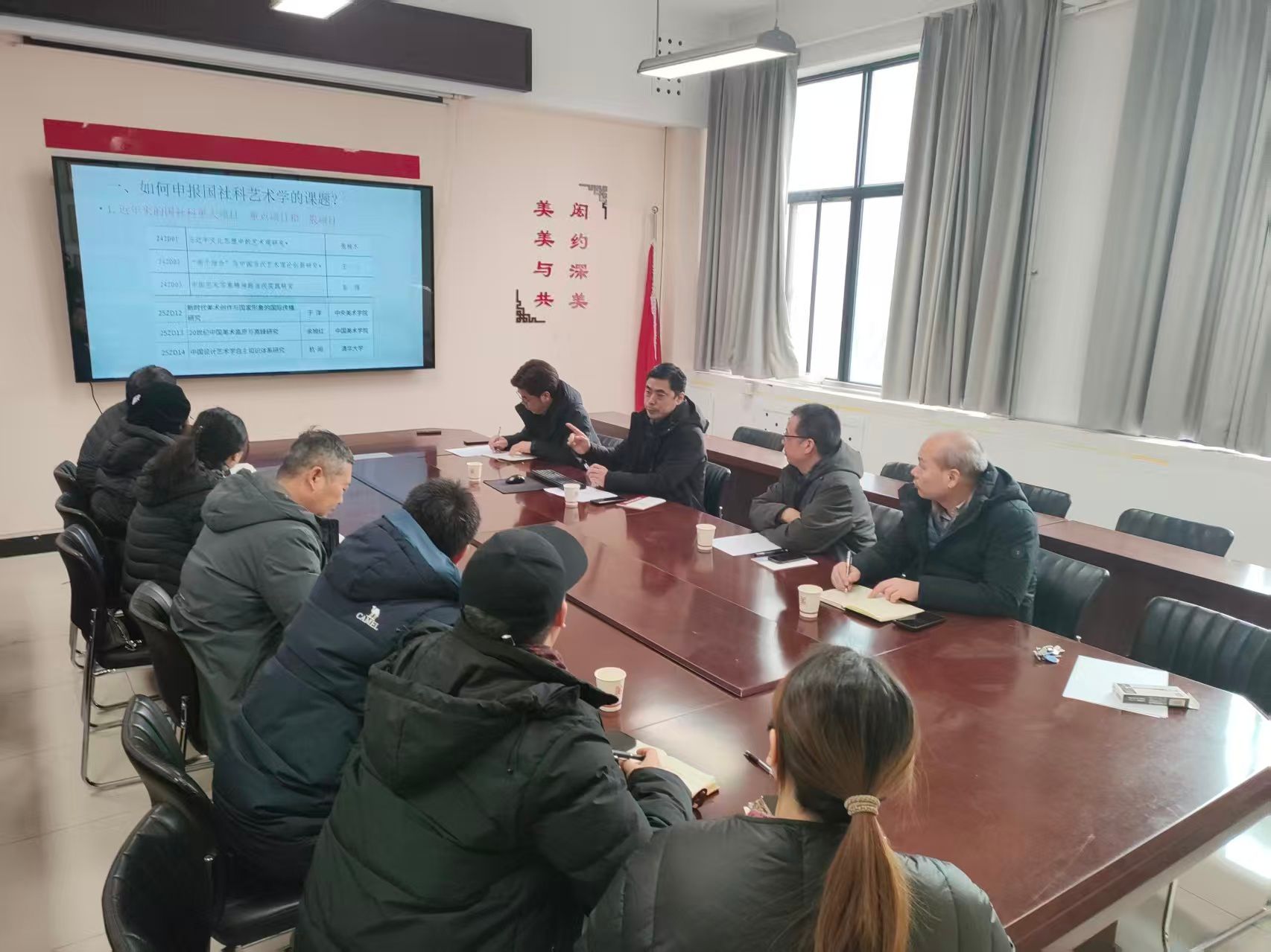 为扎实推进2026年度国家社科基金项目申报工作,切实提升申报质量与立项成功率,美术与设计学院于2026年2月1日上午在11208会议室组织召开了“国家社科基金艺术学项目选题申报与课题撰写”专题讲座暨申报辅导会。本次会议系学院本年度第三次国社科申报工作推进会,由学院科研院长胡国锋主持并作会议总结。